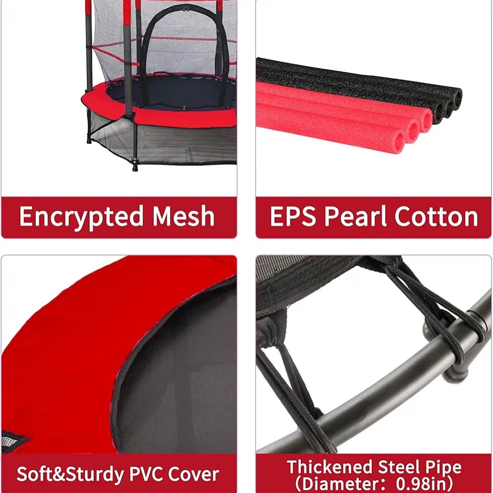 تم تصميم “ترامبولين” مع إعطاء الأولوية للجودة والسلامة. يحتوي على سياج أمان بثلاث أقواس يتيح لك رؤية أطفالك بوضوح دون أي عائق.
